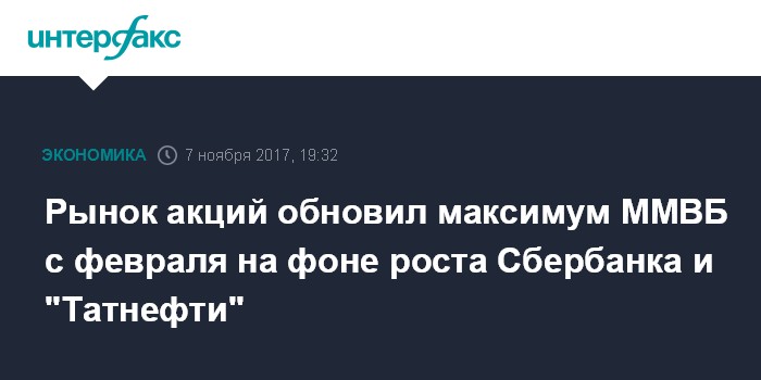 Москва. 7 ноября. INTERFAX.RU - Рынок акций РФ во вторник обновил максимум индекса ММВБ с февраля на фоне роста большинства blue chips во главе с обновившими исторические вершины бумагами Сбербанка и "Татнефти" ; дневной рост индекса ММВБ стал рекордным с января 2015 года.