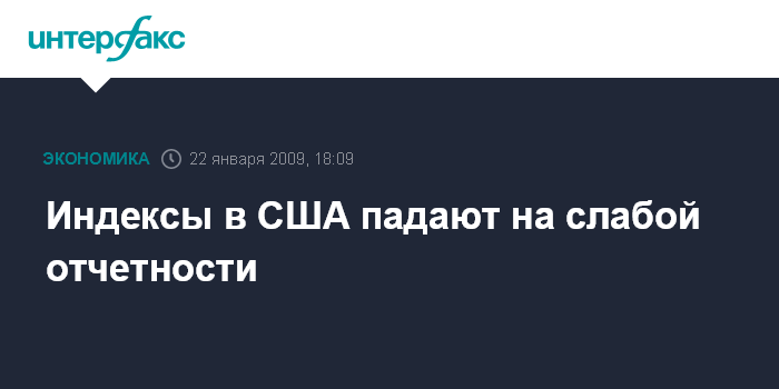 Нью-Йорк. 22 января. INTERFAX.RU - Американские фондовые индексы падают в среду на слабой отчетности таких компаний, как Microsoft и EBay, а также негативных данных по рынку жилья и рынку труда, сообщило агентство Bloomberg.