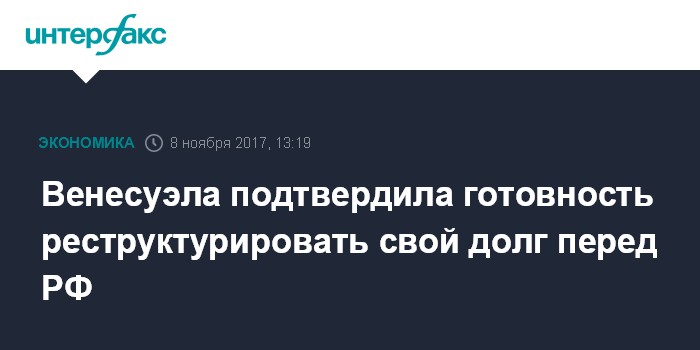 Ранее, в октябре, Силуанов заявил, что Россия и Венесуэла подготовили соглашение по реструктуризации венесуэльского долга, предусматривающее разделение погашения на две части с льготными условиями для первой.