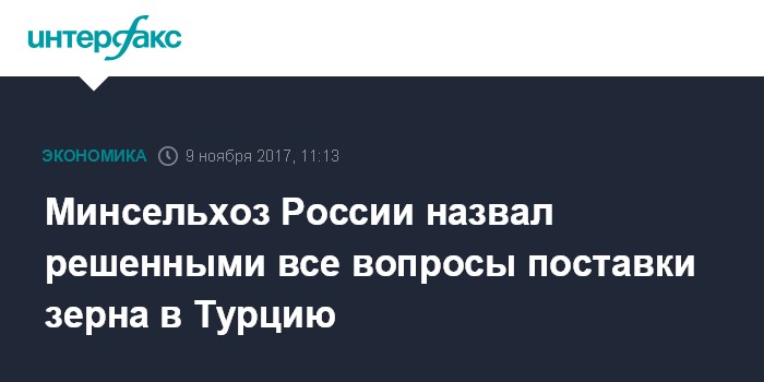 Минсельхоз России назвал решенными все вопросы поставки зерна в Турцию
