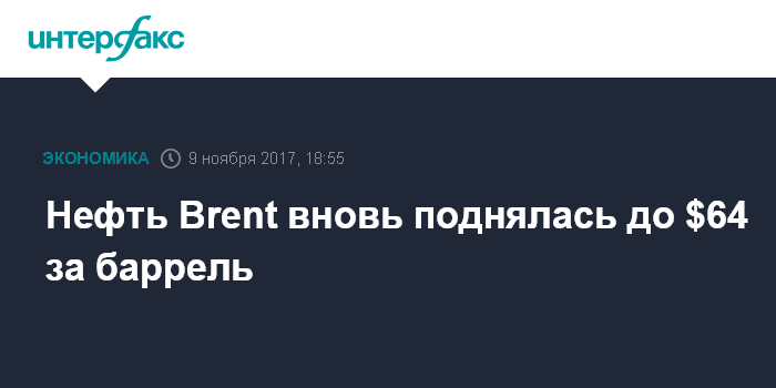 Нефть Brent вновь поднялась до $64 за баррель