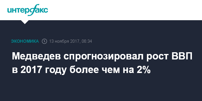 Медведев спрогнозировал рост ВВП в 2017 году более чем на 2%