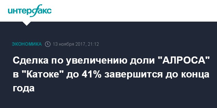 Сделка по увеличению доли "АЛРОСА" в "Катоке" до 41% завершится до конца года