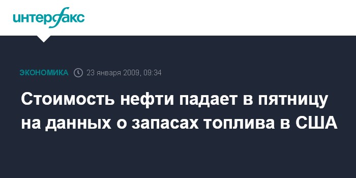 Москва. 23 января. INTERFAX.RU - Стоимость нефти падает в пятницу на данных о более значительном, чем ожидалось, увеличении запасов топлива в США на прошлой неделе, сообщило агентство Bloomberg.