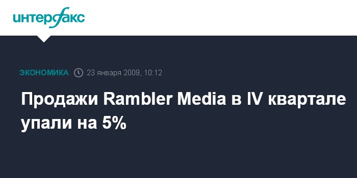 Москва. 23 января. INTERFAX.RU - Продажи Rambler Media Ltd. в IV квартале, по предварительным данным, снизились на 5%, говорится в сообщении компании.