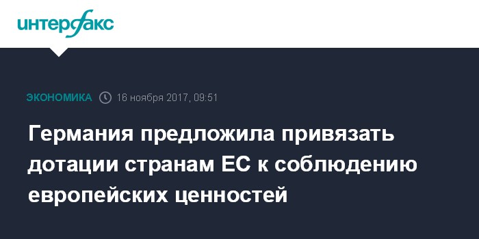 Москва. 16 ноября. INTERFAX.RU - Германия считает необходимой привязку дотационных выплат Европейского союза к соблюдению принципов правового государства, заявил статс-секретарь министерства экономики Германии Уве Бекмайер на заседании Совета ЕС в Брюсселе в среду.