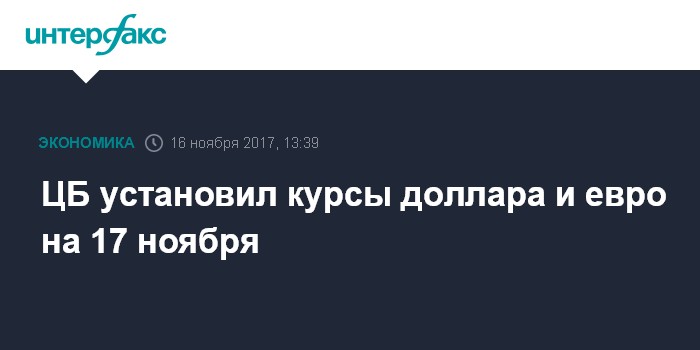 ЦБ установил курсы доллара и евро на 17 ноября
