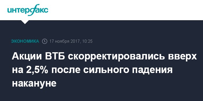 Акции ВТБ скорректировались вверх на 2,5% после сильного падения накануне