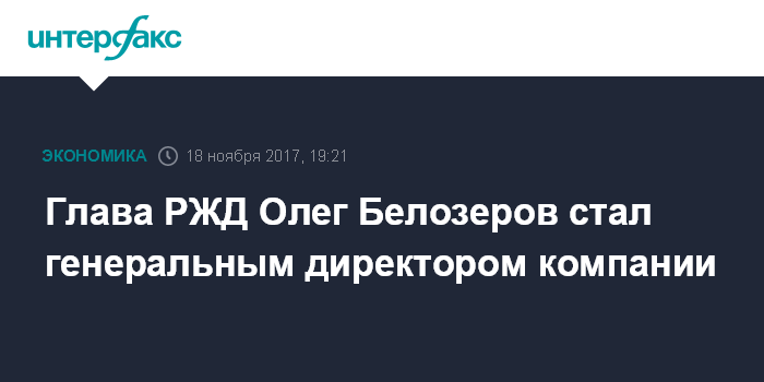 Глава РЖД Олег Белозеров стал генеральным директором компании