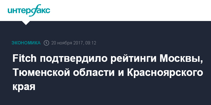 Москва. 20 ноября. INTERFAX.RU - Международное рейтинговое агентство Fitch подтвердило рейтинги Москвы, Тюменской области, Красноярского края и города Волжский (Волгоградская область).