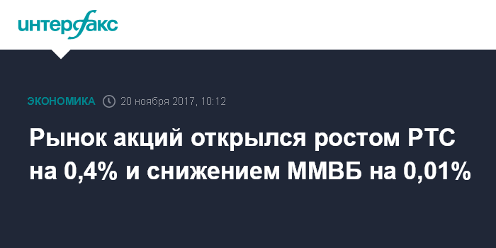 Рынок акций открылся ростом РТС на 0,4% и снижением ММВБ на 0,01%