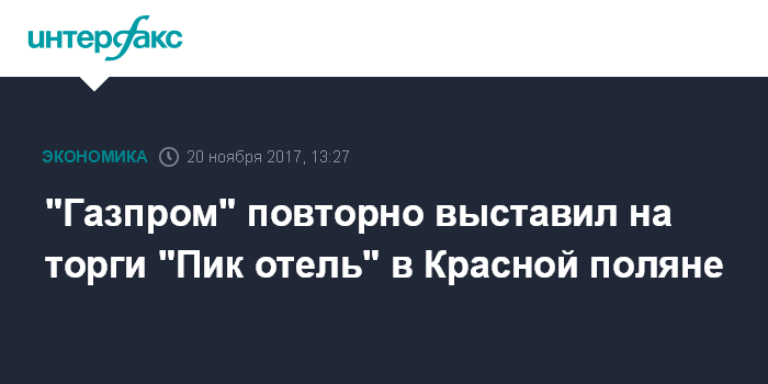 "Газпром" повторно выставил на торги "Пик отель" в Красной поляне