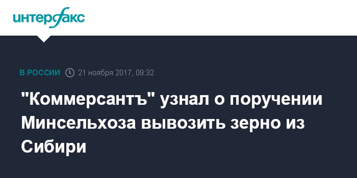 Как сообщает "Коммерсантъ", Минсельхоз просто в приказном порядке "поручил" ряду компаний, в том числе частных, закупать и вывозить зерно из Сибири. Это следует из протокола состоявшегося 13 ноября в Новосибирске выездного совещания Минсельхоза под председательством первого замминистра Джамбулата Хатуова. Оно было посвящено ситуации на зерновом рынке Сибири.