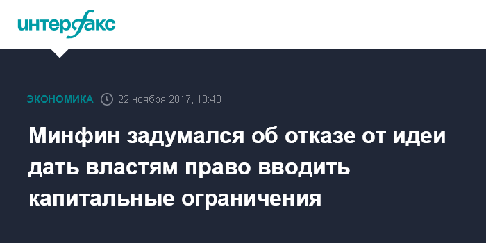 "С того момента, как мы отказались от любых ограничений по капитальным операциям, у нас было два серьезных кризиса: это и 2008-2009 гг., и 2014-2015 гг. В эти сложные моменты для финансового рынка, в моменты очень высокой волатильности, ни правительство, ни Центральный банк даже не задумывались о том, что можно ввести какие-то капитальные ограничения", - отмечал министр в интервью "России 24". "Поэтому, я думаю, что здесь Минфин немножко поторопился, прописав (предложив прописать - ИФ) это в законодательстве. Я выступаю против. Такие механизмы нам не потребуются ни в какой ситуации. У нас правильная макроэкономическая политика, у нас правильно выстроенные здесь институты, которые защищают стабильность финансового рынка, и никаких вот таких уловок здесь не нужно", - говорил он.