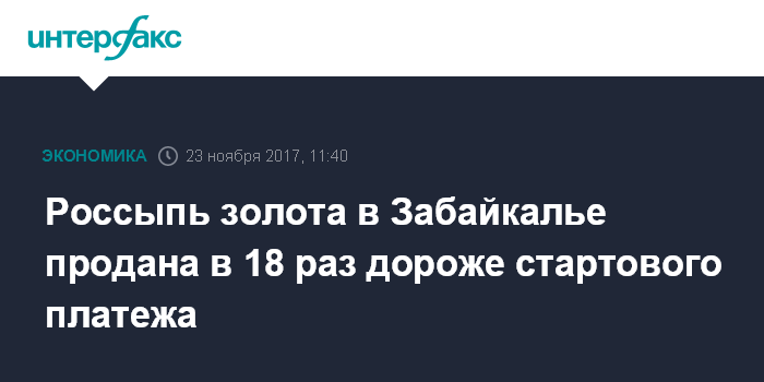Россыпь золота в Забайкалье продана в 18 раз дороже стартового платежа