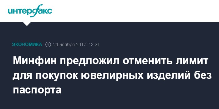 Замминистра финансов пояснил, что планируется либерализовать порядок оплаты таких товаров картой. "Мы хотим в идеале отменить лимит. Если человек покупает ювелирное изделие по карточке, то может не показывать паспорт, не важно, сколько оно стоит", - сказал Моисеев.