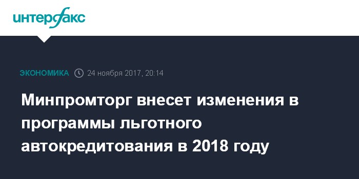 Москва. 24 ноября. INTERFAX.RU - Минпромторг готовит изменения в постановление правительства, регулирующее предоставление субсидий российским кредитным организациям на возмещение выпадающих доходов по кредитам, выданным в рамках программы льготного автокредитования.