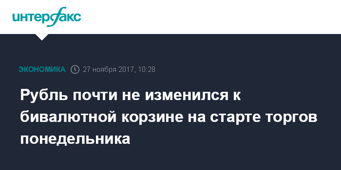 Рубль почти не изменился к бивалютной корзине на старте торгов понедельника