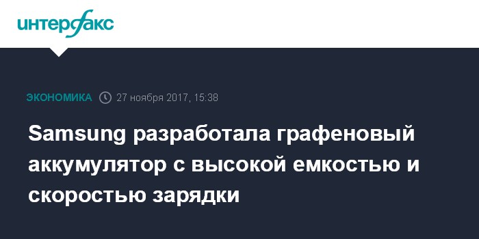 Москва. 27 ноября. INTERFAX.RU - Южнокорейская компания Samsung Electronics разработала новый аккумулятор для мобильных устройств на основе графена, емкость которого на 45% выше, чем у литий-полимерных аналогов, при этом заряжается он в пять раз быстрее.