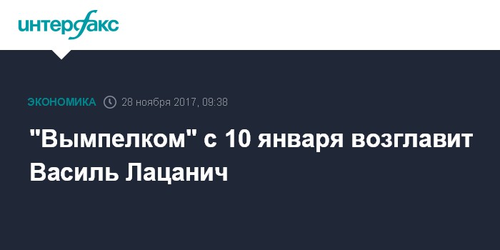 Нынешний глава "Вымпелкома" Шелль Мортен Йонсен покинет свой пост 9 января, Василь Лацанич приступит к своим обязанностям 10 января, отмечают в компании.