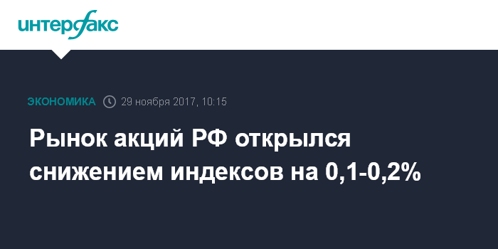 Рынок акций РФ открылся снижением индексов на 0,1-0,2%