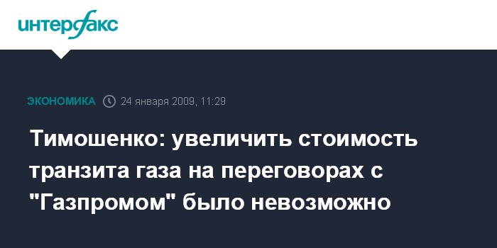 Тимошенко: увеличить стоимость транзита газа на переговорах с "Газпромом" было невозможно