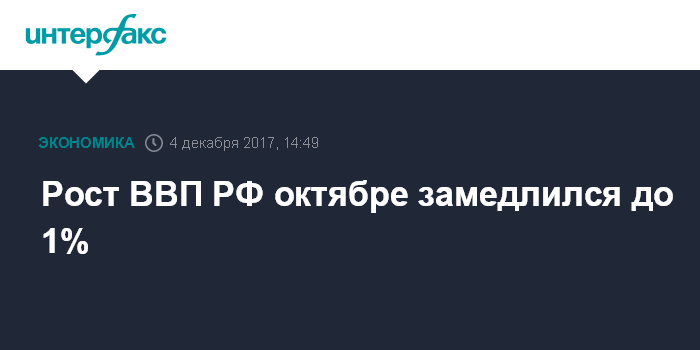 Рост ВВП РФ октябре замедлился до 1%