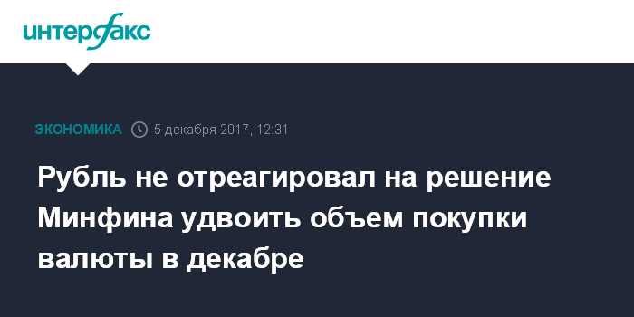 Рубль не отреагировал на решение Минфина удвоить объем покупки валюты в декабре