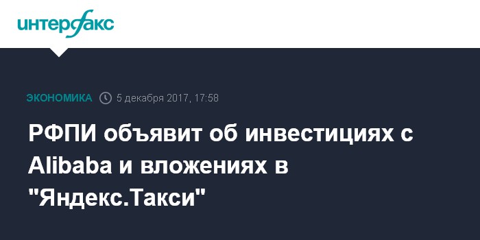 РФПИ объявит об инвестициях с Alibaba и вложениях в "Яндекс.Такси"