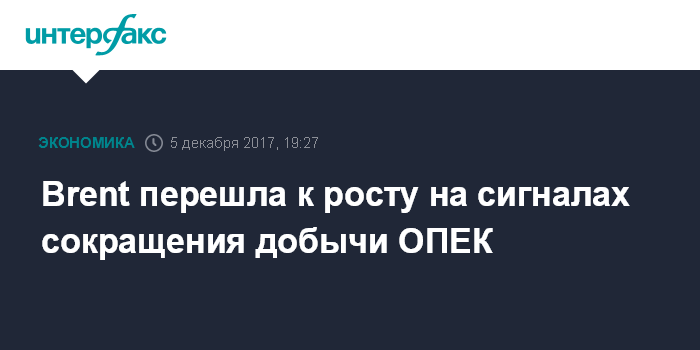 Москва. 5 декабря. INTERFAX.RU - Стоимость нефти марки Brent растет в ходе торгов во вторник на сигналах снижения сокращения добычи в странах ОПЕК до минимума за полгода.