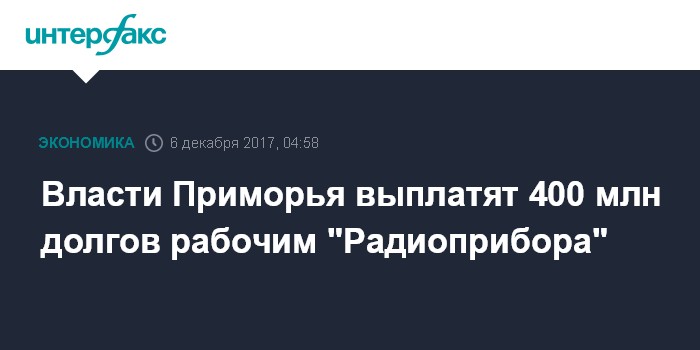 Власти Приморья выплатят 400 млн долгов рабочим "Радиоприбора"