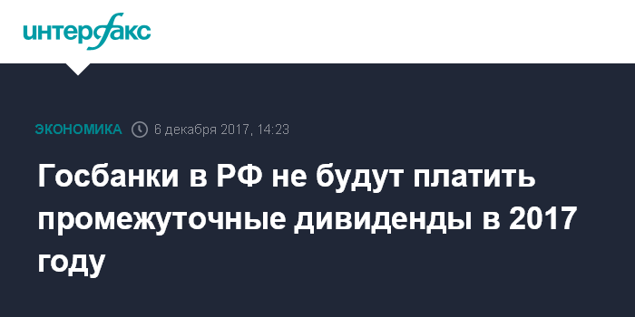 Госбанки в РФ не будут платить промежуточные дивиденды в 2017 году