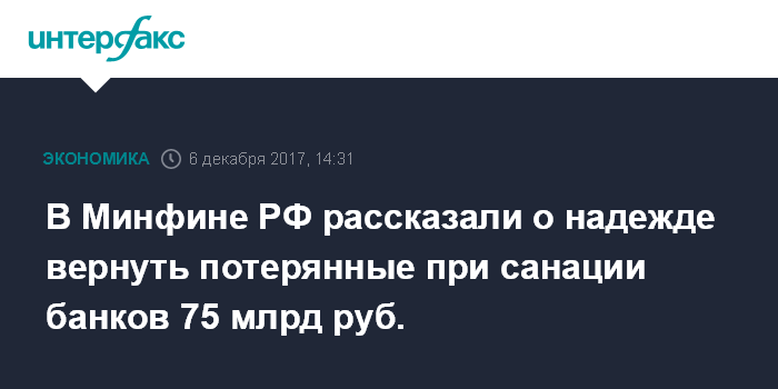 В Минфине РФ рассказали о надежде вернуть потерянные при санации банков 75 млрд руб.