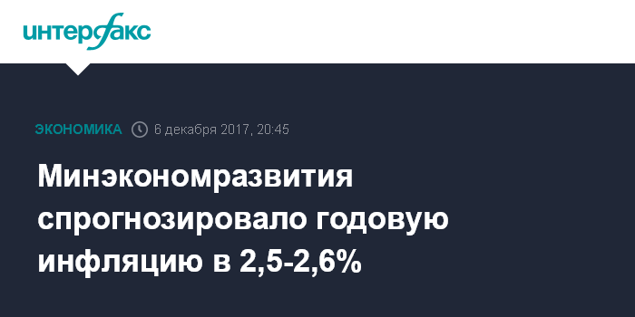 Консенсус-прогноз "Интерфакса" по итогам опроса аналитиков в конце ноября по инфляции на 2017 год равняется 2,6%.