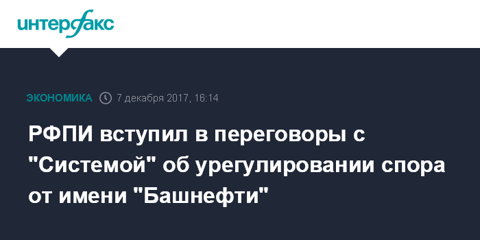 РФПИ вступил в переговоры с "Системой" об урегулировании спора от имени "Башнефти"