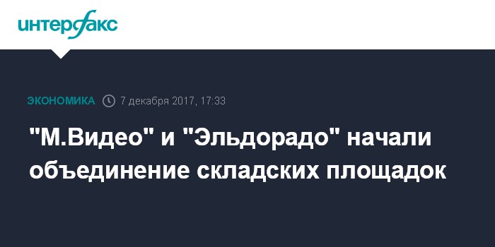 Москва. 7 декабря. INTERFAX.RU - Ритейлеры "М.Видео" и "Эльдорадо", принадлежащие группе "Сафмар" Михаила Гуцериева, реализуют первый проект в рамках планируемой интеграции - в логистике. Компании будут совместно использовать два ключевых региональных распределительных центра (в Новосибирске и Ростове-на-Дону).