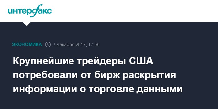 Крупнейшие трейдеры США потребовали от бирж раскрытия информации о торговле данными
