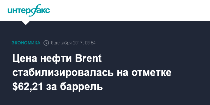 Цена нефти Brent стабилизировалась на отметке $62,21 за баррель