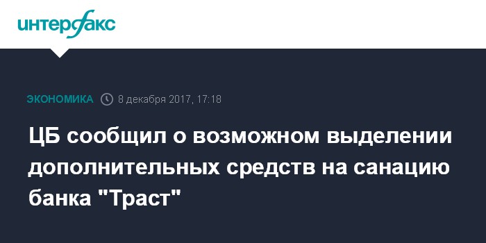 ЦБ сообщил о возможном выделении дополнительных средств на санацию банка "Траст"