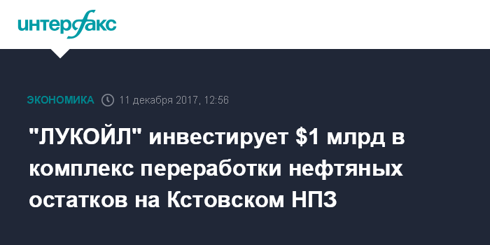 "ЛУКОЙЛ" инвестирует $1 млрд в комплекс переработки нефтяных остатков на Кстовском НПЗ