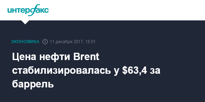 Цена нефти Brent стабилизировалась у $63,4 за баррель