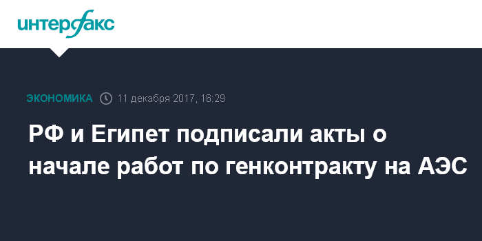 РФ и Египет подписали акты о начале работ по генконтракту на АЭС