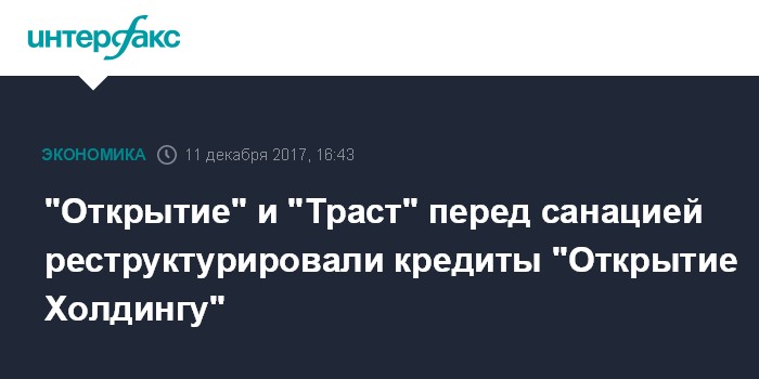 "Открытие" и "Траст" перед санацией реструктурировали кредиты "Открытие Холдингу"