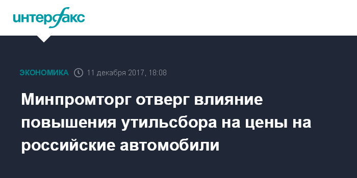 Москва. 11 декабря. INTERFAX.RU - Повышение утильсбора не приведет к росту цен на произведенные в РФ автомобили, заявляет Минпромторг.