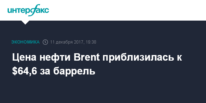 Цена нефти Brent приблизилась к $64,6 за баррель