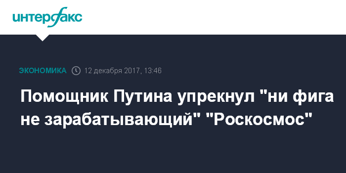 Помощник Путина упрекнул "ни фига не зарабатывающий" "Роскосмос"