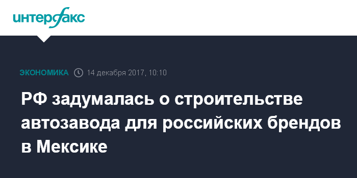 Москва. 14 декабря. INTERFAX.RU - РФ и Мексика обсуждают строительство автомобильного завода для российских брендов в Мексике, заявил журналистам министр промышленности и торговли Денис Мантуров.