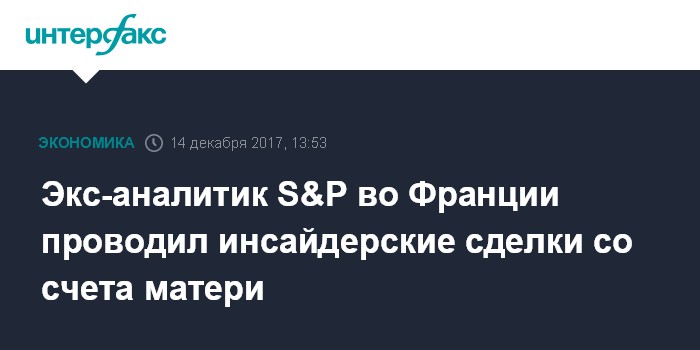 Экс-аналитик S&P во Франции проводил инсайдерские сделки со счета матери