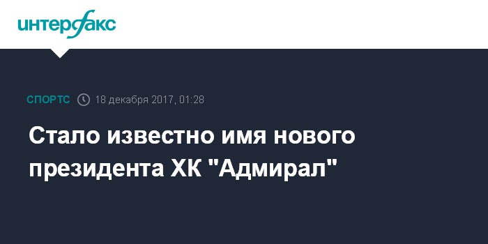 Стало известно имя нового президента ХК "Адмирал"