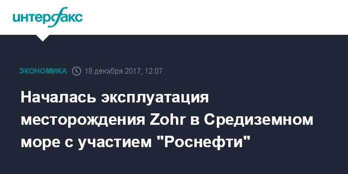 Началась эксплуатация месторождения Zohr в Средиземном море с участием "Роснефти"